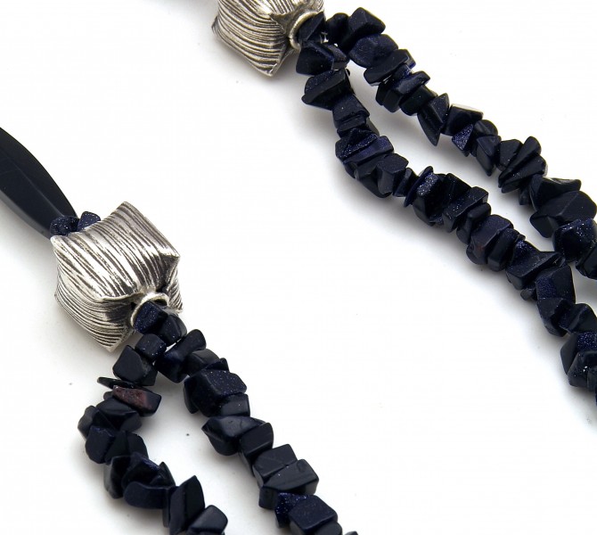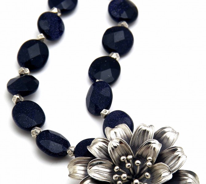 The woman who possesses both mystery and beauty will be inexorably drawn to the silver sandstone. Silver sandstone is truly exquisite as it seems to capture a star -sprinkled blanket of sky within its glittering depths. This necklace exhibits wondrous sparkle from a combination of 925 silver and silver sandstone, emitting irresistible ethereality and elegance.