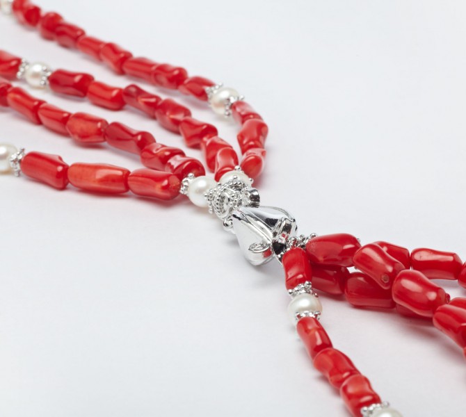 Corals and pearls are stunning gems essential to the collection of any Marine Queens. Rich red hues and soft pearly sheens express a love for adventure, and not to mention- fearless style! The buttery irredescence of pearls and furious red punch of coral are accented by silver beads for added subtle sprinklings of sparkle. Wear this to add instant zing to any outfit.