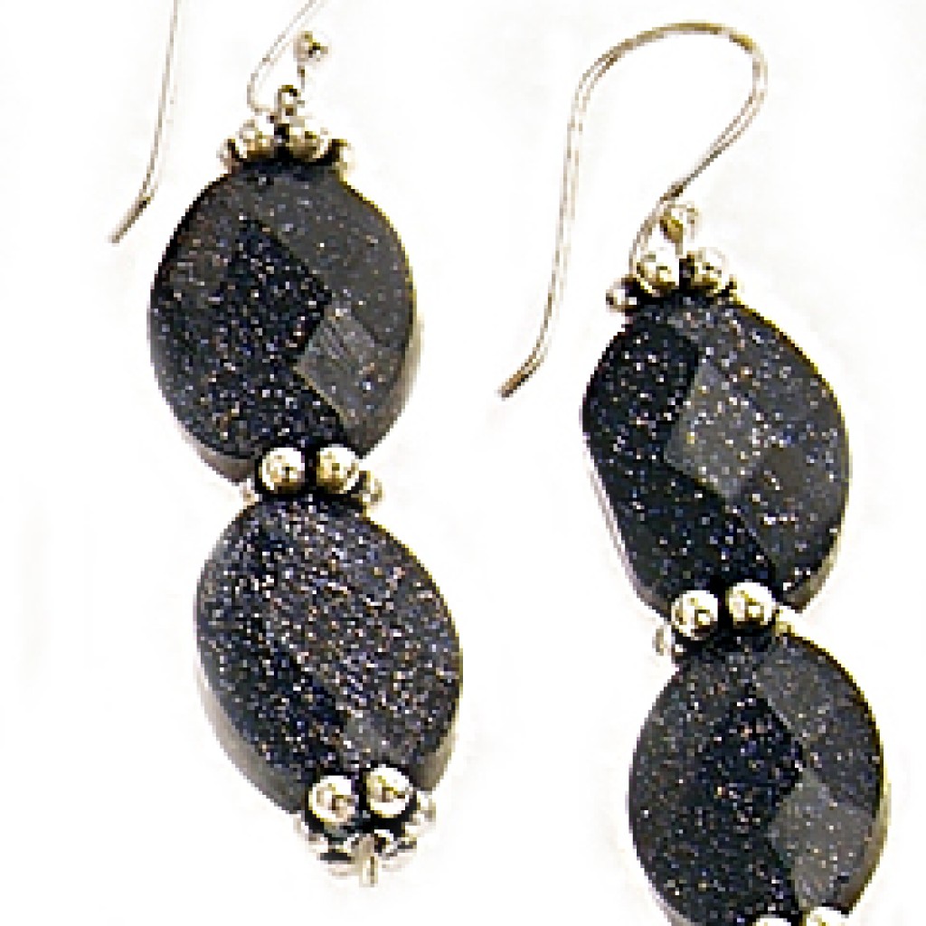 For those of us who live in the city, urban structures and discharge have brought about light pollution. We rarely experience and therefore often forget the mesmeric spectacle of a star-studded carpet of sky. Silver sandstone remembers. An amazing stone that resembles a deep night and a vortex of stars, the brilliant silver sandstone recalls the night sky as it ought to be – filled with stars. The gemstone pieces have been cut to maximize shine, and silver beads highlight the remarkable sparkle of sandstone. Restore your connection to humanity’s cosmic ceiling by wearing earrings that portrays universal symbols in their natural habitat- the luminaries of outer space above and beyond.