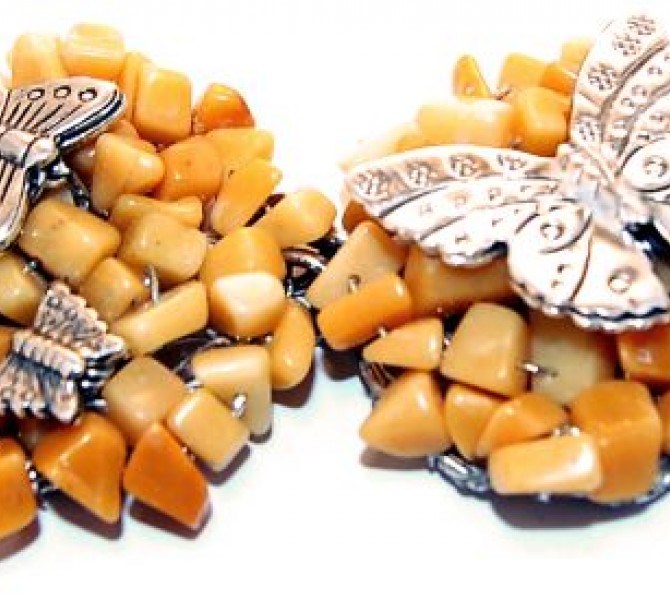 Yellow Jasper is grouped to form 4 circular resting places for 925 silver butterflies. Admire their serene forms of beauty, reflecting the very characteristics that should imbibe the wearer....