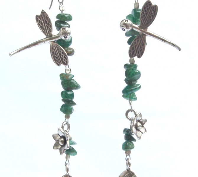 The deep, lush green of Aventurine is reminiscent of thick jungles that guard secrets which are older than human history. Such a commanding colour is a reminder to be humble and receptive in the presence of nature. Silver dragonflies and foliage add glint and contrast to these slender pieces and bequeath a subtle yet empowering aura upon the discerning woman. ...