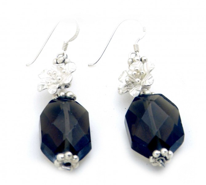 Much of the elegance and intrigue of smoky quartz comes from its ruddy, antique colour. In smoke and mirrors, we feature a visual mantra in smoky quartz, a stone known for its grounding power. A pair of smoky quartz beads is cut at angles such that whenever there is light, there is a fascinating swap session between refracted and reflected light. Silver beads with intricate details add sparkle and class of these effortlessly exquisite gems....
