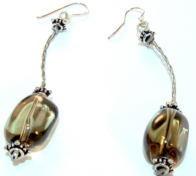 Russet rebel features a pair of tumbled smoky quartz beads that have a deliciously fluid appearance. Silver beads hint at an inner shine, so potent it cannot be completely brought out to the open. Mysterious and molten, smoky quartz is a gem that captures the essence of the effortlessly irresistible woman. Experience and understand her power by wearing smoky quartz. How does she do it? What makes her so easy on the eye and arresting to the heart? Become her by wearing Russet ...