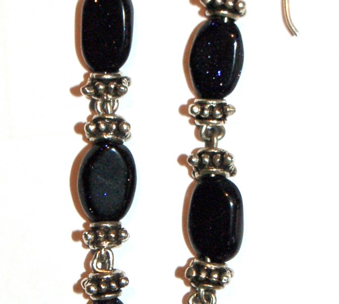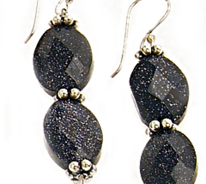 Silver sandstone is an exciting jewel that seems to contain a snapshot of the cosmos in its glittering depths. Specks of copper will dance under any exposure to light and behave as fragments of glimmering spots on deep cobalt, calling to mind a starlit sky on a clear night. Indian inspiration features a trio of flat silver sandstone ovals, punctuated by intricate silver beads to bring out the shine of sandstone. ...