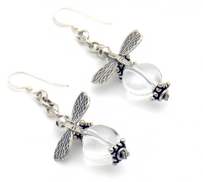 When the mind is clear, all things in life taste sweeter. The glassy clean look of crystal quartz rouses a precision and liberation of thought. The silver dragonflies symbolize renewal of spirit; let them take you to greater heights by inspiring the flights of your imagination....