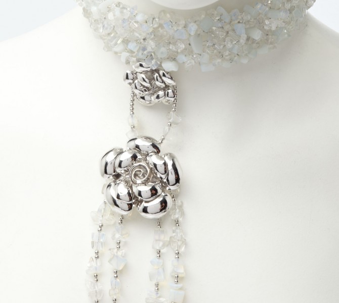 Silver starfish, translucent opals and clear crystals all help us recall the solitary splendor of a moonlit seaside. Organic yet mystical, wear this star-studded delight either during the daytime or nocturnal shift....