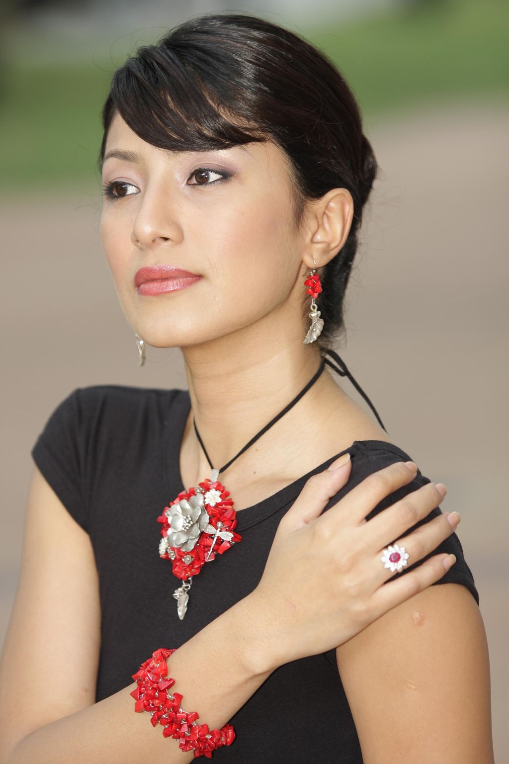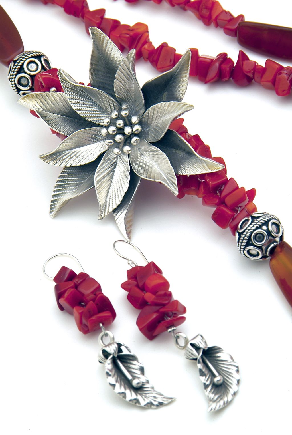 Red coral is truly a remarkable invention of the sea. When polished, it reveals a glossy article of punchy red. You’ll have the perkiest pair of ears around with these bundles of cherry red coral beads hanging from the lobes. A little silver accent completes this merry sonata. Clusters of red and a dash of silver can really make the ears sing! Make way for some cheer - in cherry.