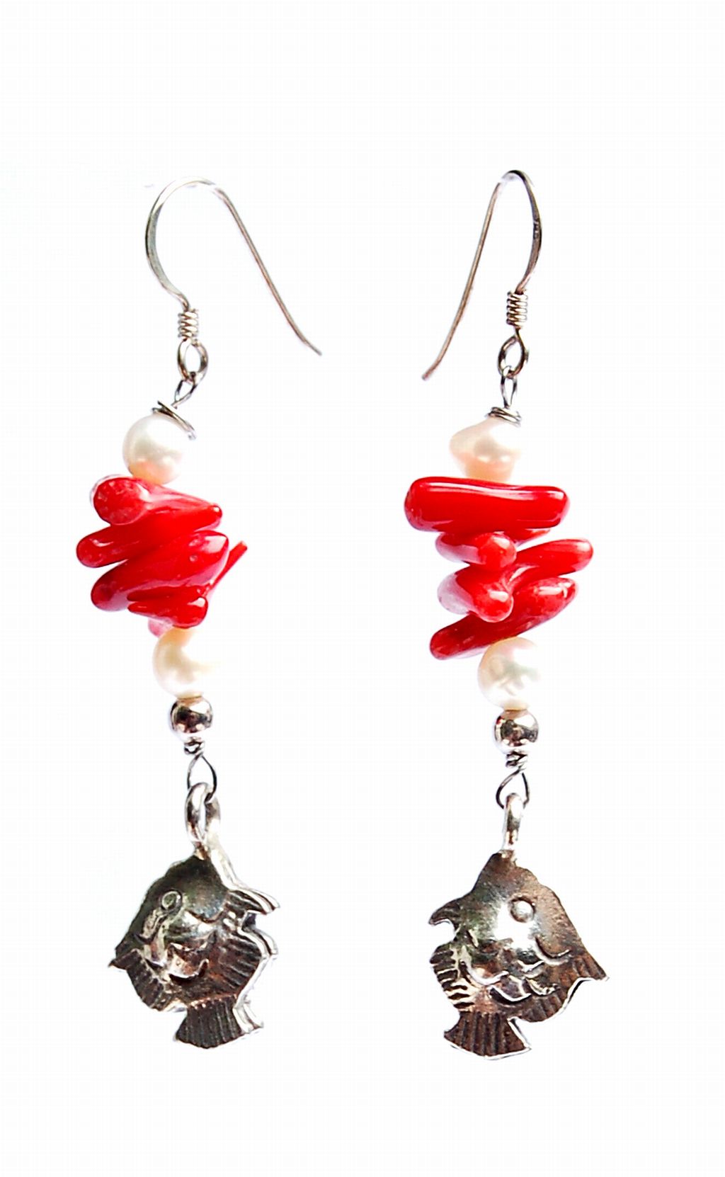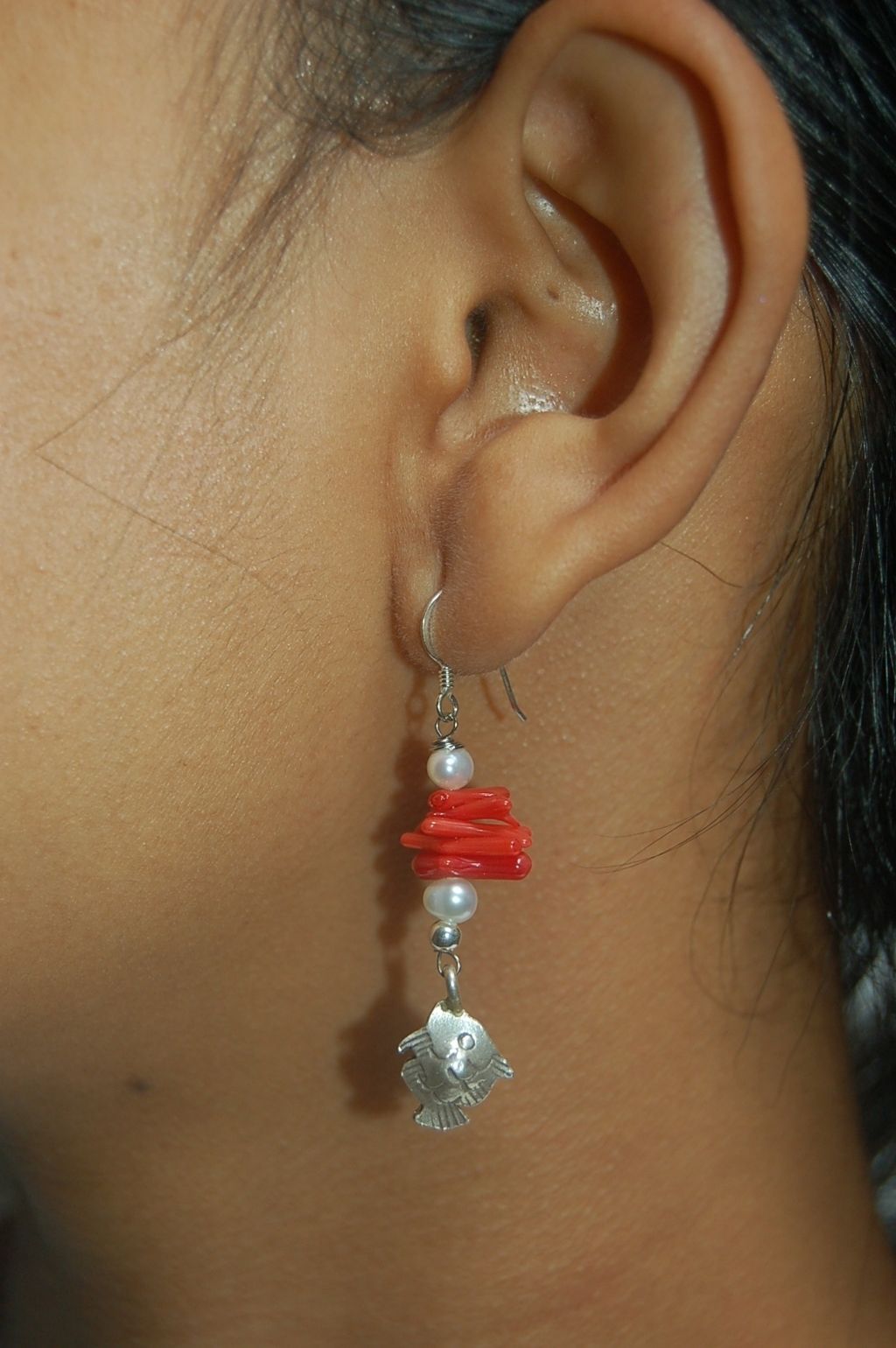 As part of an earring duo, “Heaven Above | Earth Below”, this piece celebrates the wondrous universe which we live in. It evokes a sense of adventure and exploration into the mysterious world that lies beneath the ocean surface. The accentuation by the alternating shimmering pearls and the red coral chips is conversely likened to the various layers of the water from the surface to the ocean bed.