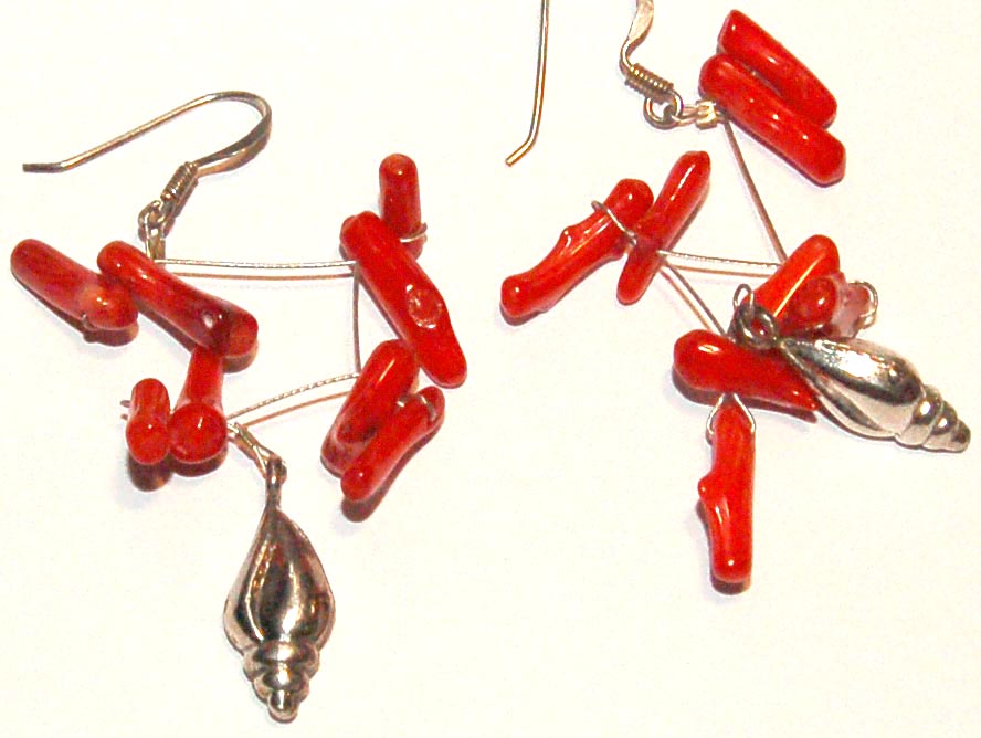 Singing shells are ocean bells that capture the songs of the sea. You can almost hear the murmur of salty waves when you wear these earrings. Red coral, sensual and vibrant, adds flashes of chilli red to these silver earrings. An innovative beading technique allows the silver shells to dangle from the ears as though the treasures of the deep are emerging extensions from the ears.