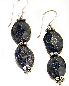 For those of us who live in the city, urban structures and discharge have brought about light pollution. We rarely experience and therefore often forget the mesmeric spectacle of a star-studded carpet of sky. Silver sandstone remembers. An amazing stone that resembles a deep night and a vortex of stars, the brilliant silver sandstone recalls the night sky as it ought to be – filled with stars. The gemstone pieces have been cut to maximize shine, and silver beads highlight the remarkable sparkle of sandstone. Restore your connection to humanity’s cosmic ceiling by wearing earrings that portrays universal symbols in their natural habitat- the luminaries of outer space above and beyond.