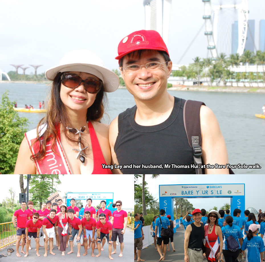 On June 2nd 2012, “Classic Mrs Singapore Queen of Hope 2012” Yang Lay participated in the Bare Your Sole 2012 walk together with Manhunt Singapore 2012 contestants.