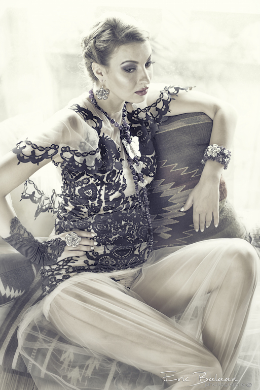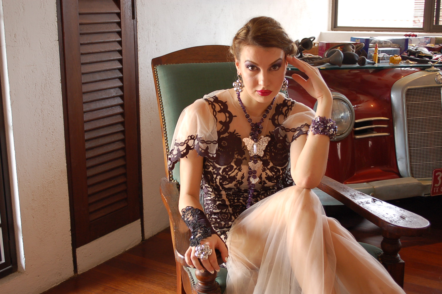 Shiny silver smiling butterflies sharply contrast with the deep lush purple of dark Amethyst. This necklace is lavish in length and bestows an air of the imperial upon its wearer.