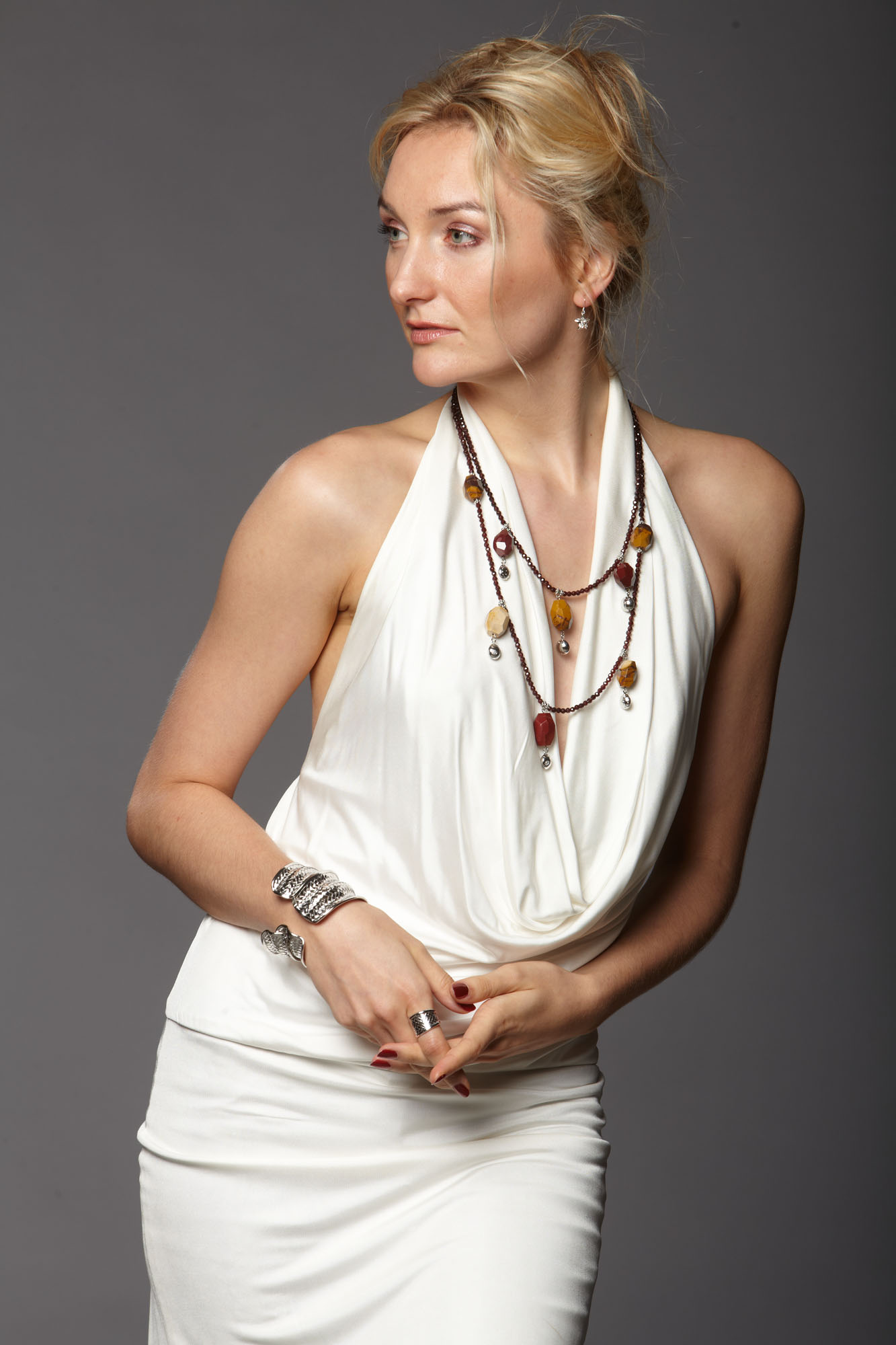 Ladybirds are renowned as traditional symbols of luck, as is the colour red. These lucky elements have been combined; the insect in silver, the red in the vibrant shades garnets, to create a necklace that is a double-stranded powerhouse of optimistic motivation. Don this profusion of energizing tokens to preserve your get-up-and-go.