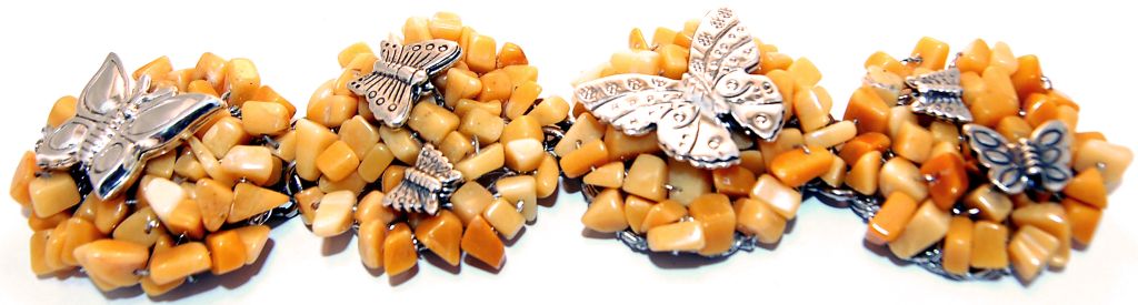 Yellow Jasper is grouped to form 4 circular resting places for 925 silver butterflies. Admire their serene forms of beauty, reflecting the very characteristics that should imbibe the wearer.