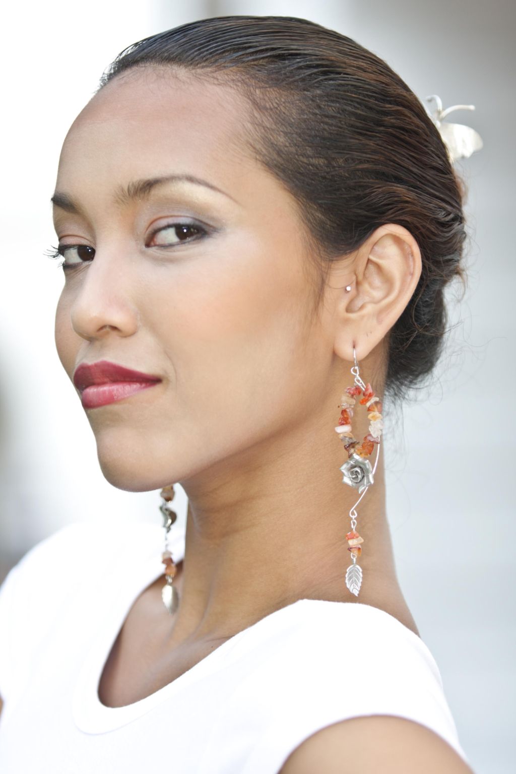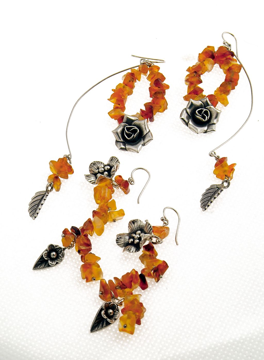 As you can see, Carnelian presents an ample medley of warm hues beyond an earthy reds and yolk-like yellows. It calls to mind the bountiful sunshine and scenery of summer; apple orchards, fields of poppies, rows of daisies, pots of tulips and armies of big, happy sunflowers as golden as their namesake the sun. Silver roses and elfin leaves adorn this snippet of Mid-year abundance. Carnelian carnival will bring on the brightest smiles to the spirit of belle de jour.