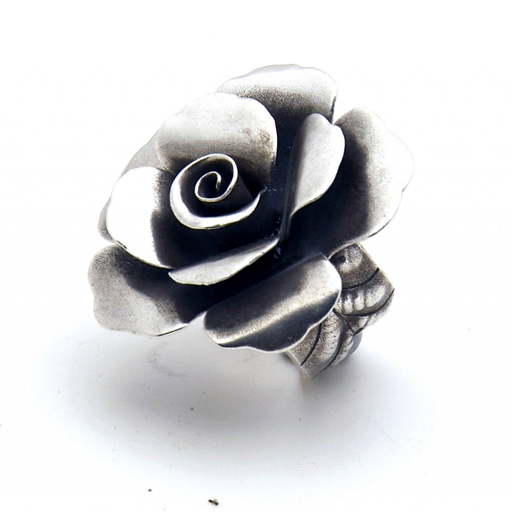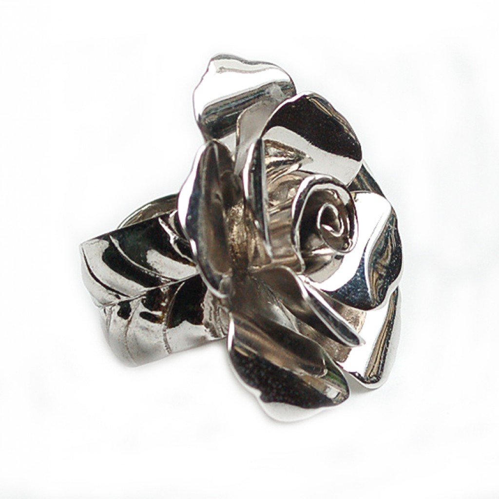 A modern take on the classic rose is presented in this flat rose ring. The adjustable leaf band adds a more intricate touch to its audacity, making it an especially convenient gift.
